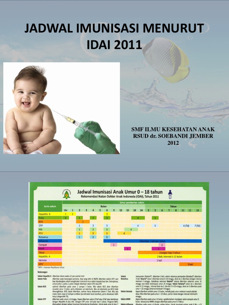 Pemberian imunisasi sesuai jadwal bisa melindungi anak dari penyakit secara optimal. Mungkin identik dengan salah satu tindak penyuntikan vaksin yang dilakukan kepada bayi. Jadwal imunisasi bayi dan anak menurut idai. Jadwal imunisasi terbaru idai 2017. Jadwal imunisasi idai 2017deskripsi lengkap.