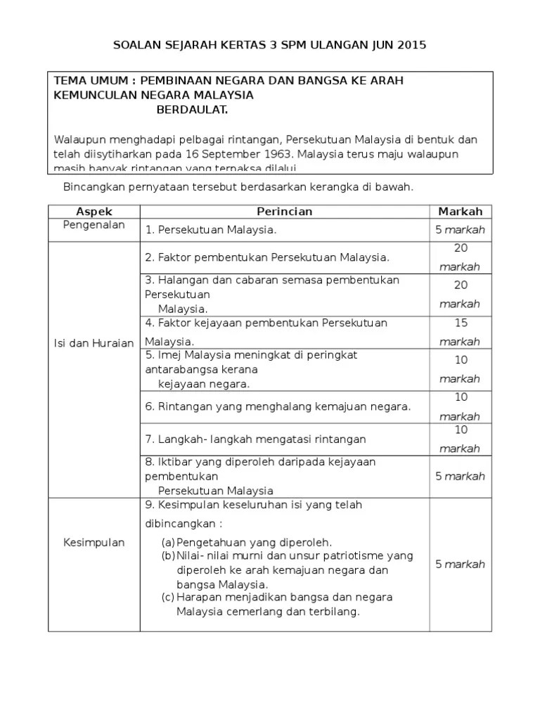 Related : Kesedaran Tentang Pembinaan Negara Dan Bangsa Kertas 3 - Dipetik dari lembaga peperiksaan malaysia (lpm), tema umum bagi kertas 3 sejarah spm 2015 adalah :.